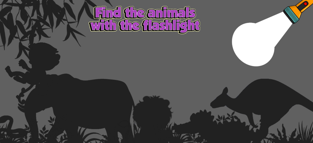 The second page is a Flashlight game, the students need to move the flashlight around the whiteboard to discover all the animals hidden and name them.