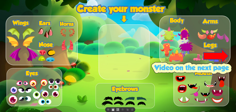 In this game, the students can create a monster by adding different body parts and later describing it.